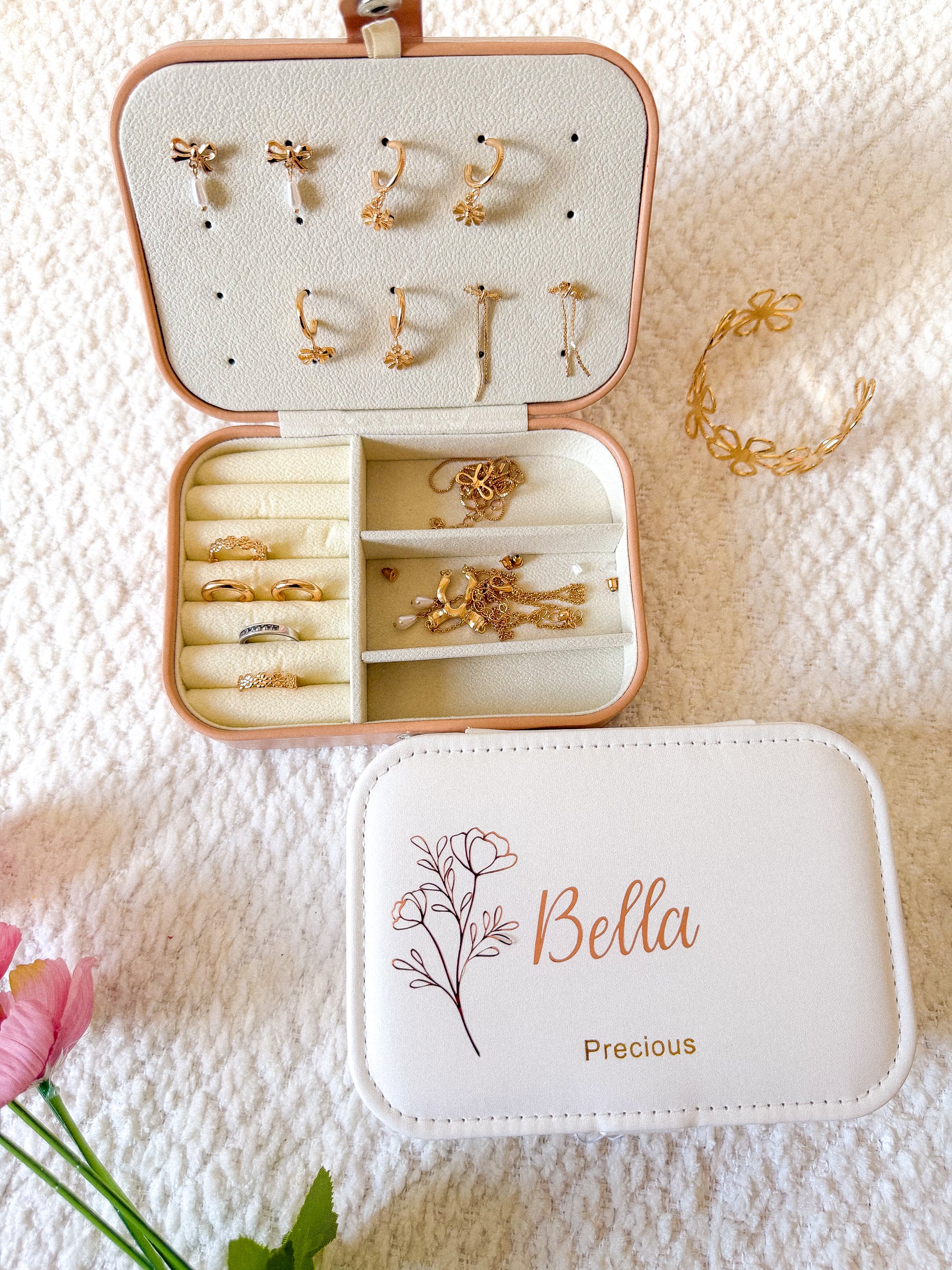 Personalised Premium Jewellery Box – Custom Name | Ivory Travel Jewellery Case